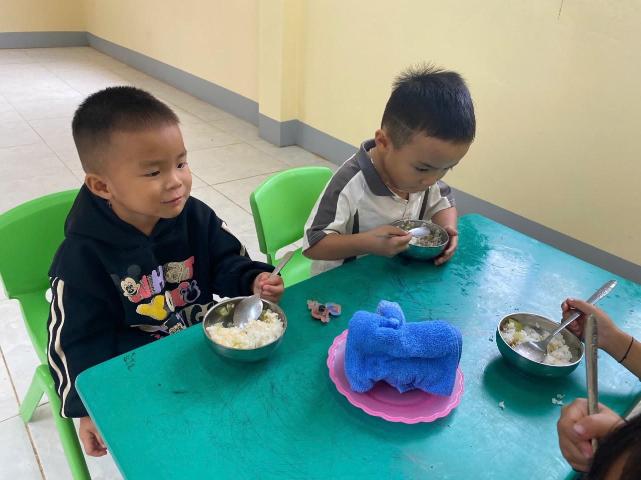 La cantine bénéficiera de produits issus d’un jardin potager local et du programme de soutien alimentaire « Nuôi em Mộc Châu », garantissant un repas quotidien équilibré pour une cinquantaine d’enfants.