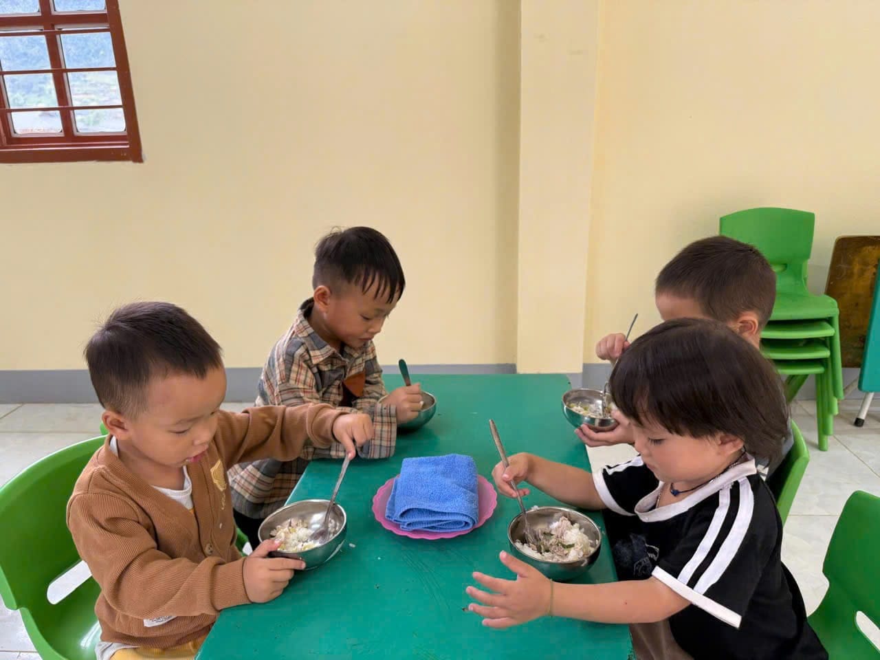 Cette commune rurale et isolée regroupe plusieurs minorités ethniques (Thaï, Mong, La Ha, Kinh) et compte de nombreux sites scolaires dispersés, dont certains ne disposent pas encore d’infrastructures adaptées pour la préparation et le service de repas aux enfants. La création de cette cantine vise à améliorer l’alimentation scolaire, les conditions d’accueil et la santé des élèves, en particulier pour les enfants de maternelle.